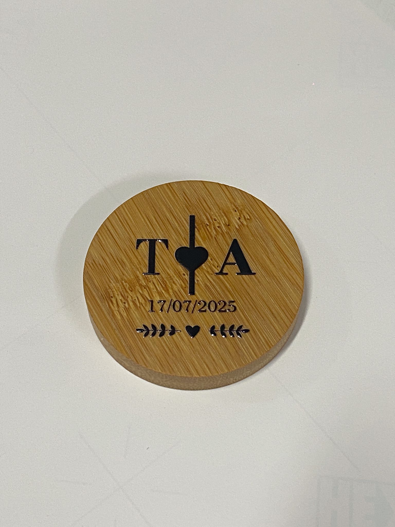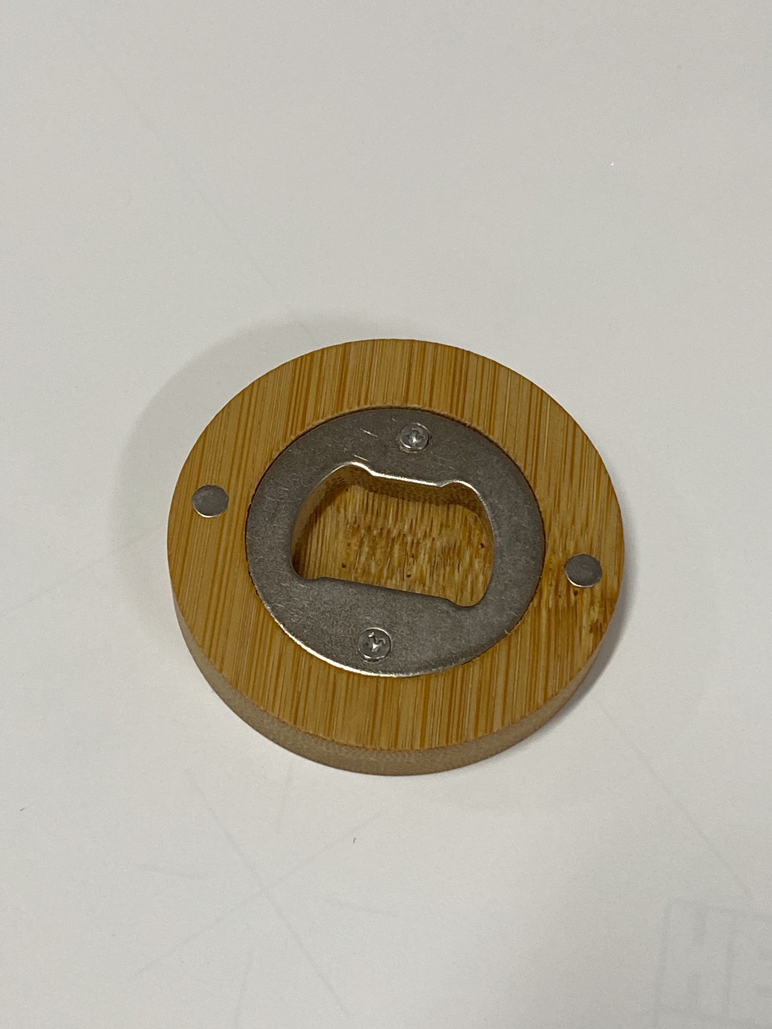 Abridor imantado de bambú con función posavasos. Personalizado en dtf uv