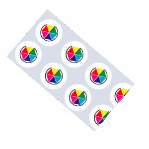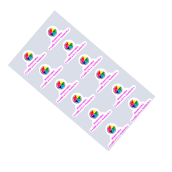 Etiquetas adhesivas impresas sobre vinilo monomérico. Disponibles redondas, cuadradas o con silueta personalizada. Se entregan en láminas listas para usar.