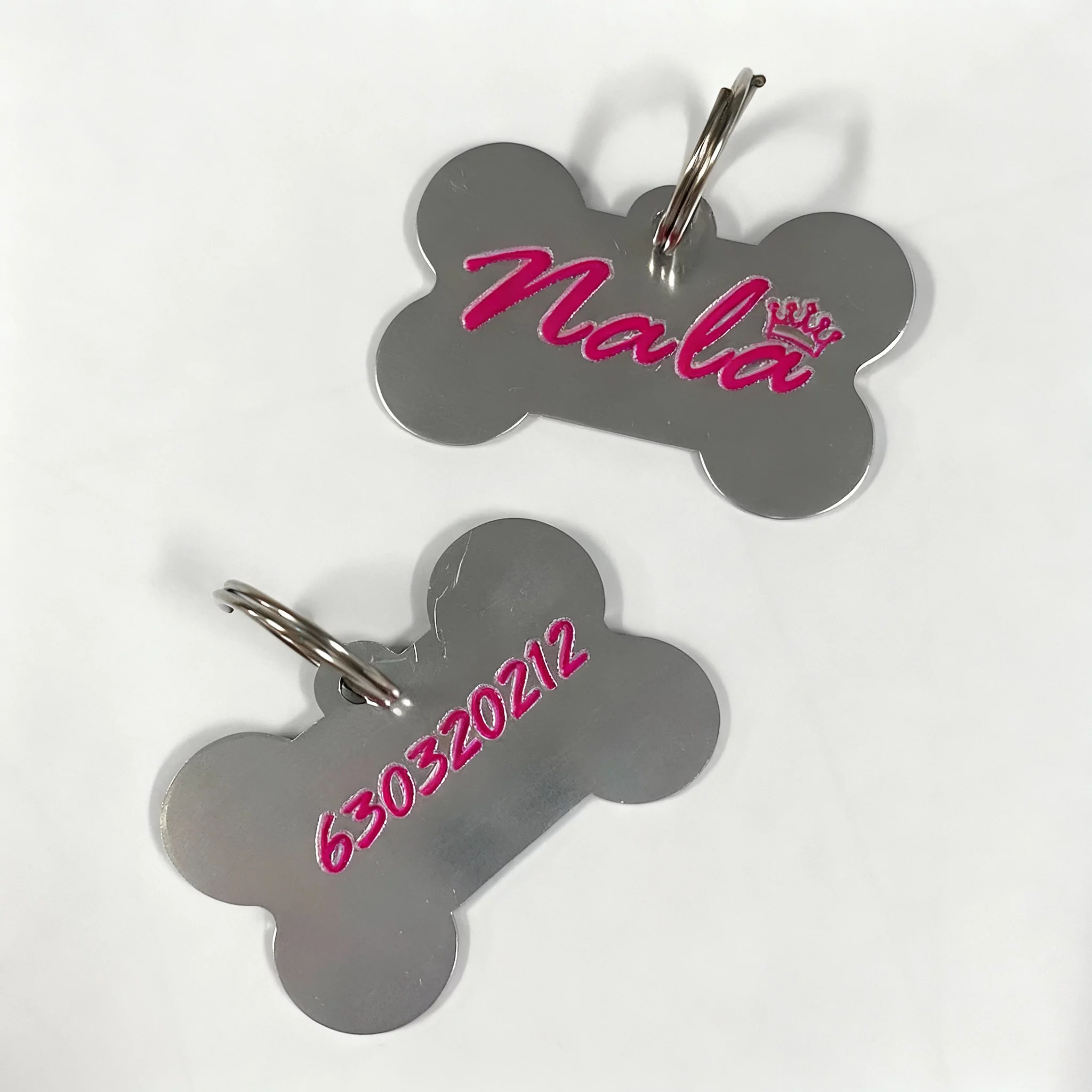 Características: chapa plateada de aluminio. Medidas 3,8cm x 2,5cm. Personalizada en DTF UV.