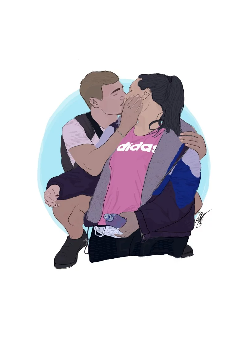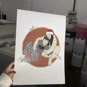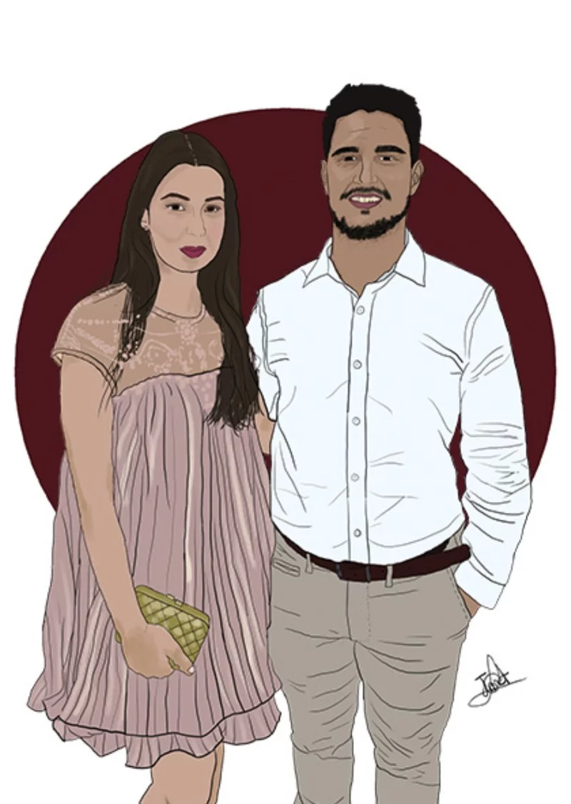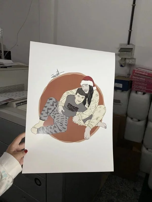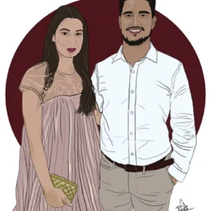 Características: Ilustración detallada lineal, partiendo de imagen de referencia. Incluye detalles como rostro trabajado y ropa similar a la imagen de referencia.