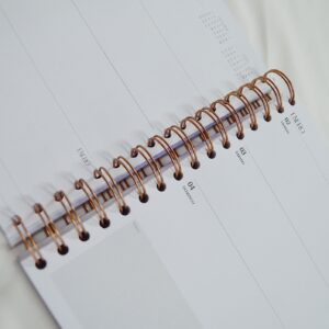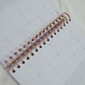 Características: Formato Din A5, terminación wire-o y elástico de cierre. Interior impreso sobre papel de 90gr.