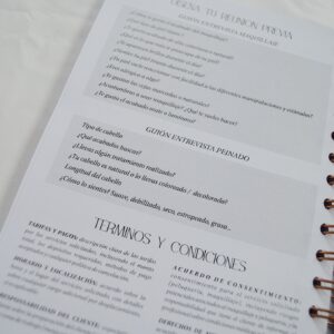 Extras especial profesionales del sector: Plan de citas, Listado del kit de maquillaje, Ideas de contenido, Wishlist, Diseño de la reunión perfecta + Términos y condiciones del servicio, 2 páginas de Stickers específicas y 16 fichas de cliente (4 maquillaje, 4 peluquería, 4 shooting y 4 cursos/asesorías)..
