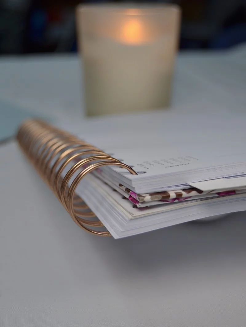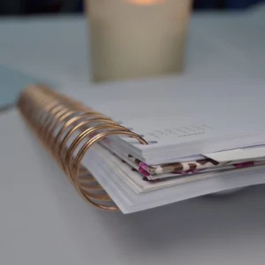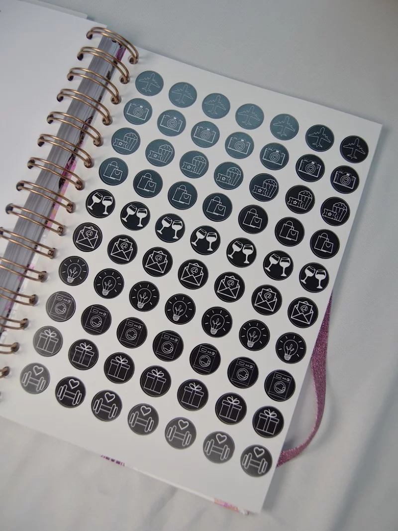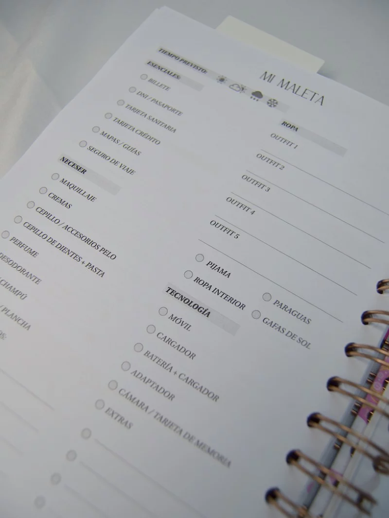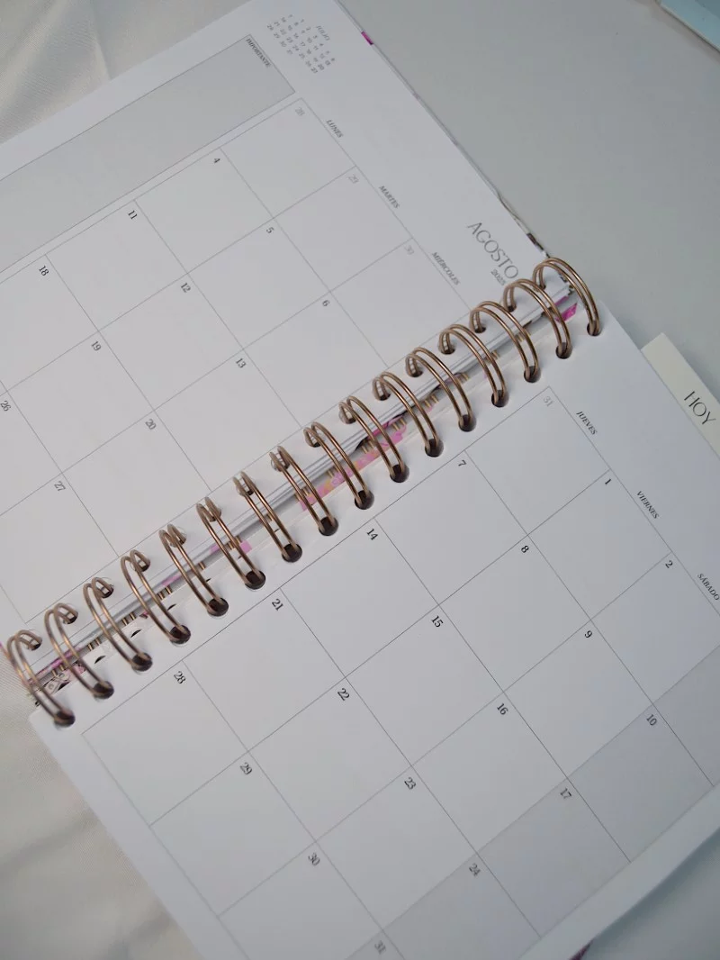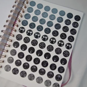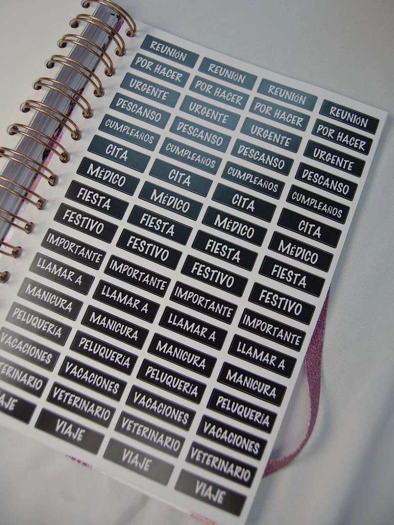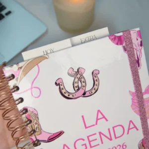Características: Tamaño A5 terminada en Wire-o (para poderla doblar cómodamente), tapa dura laminada con elástico de cierre (lo cual la hace ultra resistente), interior impreso sobre 90gr de vista semanal (resistente a subrayados y bolígrafos de tinta gel).